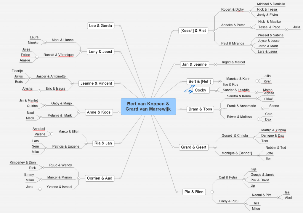 De vierde editie van dit feest alweer. Na de succesvolle edities van 2009, 2014 en 2019 nu die van 2024. Als het goed is met weer meer feestgangers, De familie breidt zich zowel in de breedte als in de volgende generaties verder uit. Inmiddels mogen we vier generaties tellen vanaf Hubertus van Koppen + Gerarda van Koppen-Marrewijk. Maar de 3e generatie dijt ook uit door nieuwe vrienden, vriendinnen of partners. In totaal mogen we er (op moment van schrijven) 144 tellen. Die kunnen er om diverse redenen niet allemaal zijn de 13e, maar zoals het er nu naar uitziet wordt het weer heel druk en hopelijk heel gezellig. Voor sommigen onder de neven en nichten wellicht een nieuw weerzien sinds 2019. Een dat is nou precies wat we graag willen dat er gebeurt. Dat jullie elkaar blijven zien ook al is het pas na 5 jaar en op deze manier met elkaar in contact blijven.